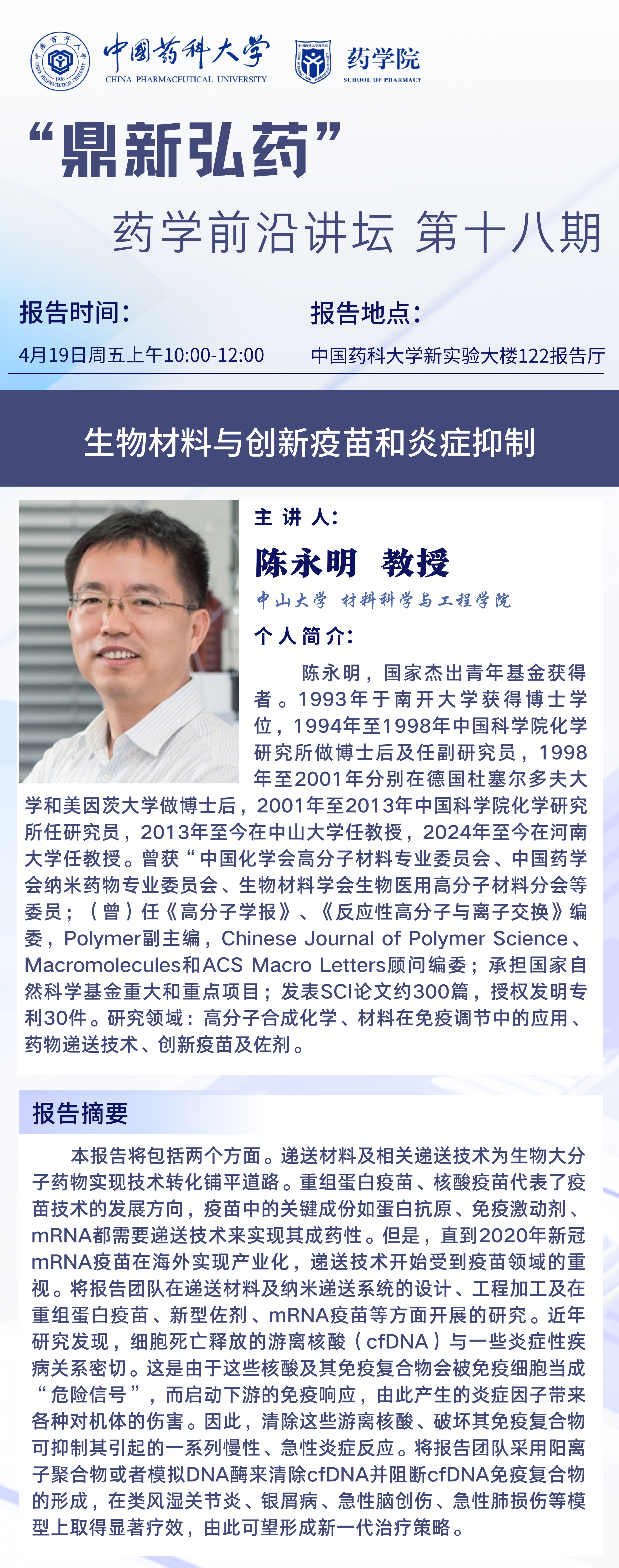 “鼎新弘药”药学前沿讲坛第十八期通知