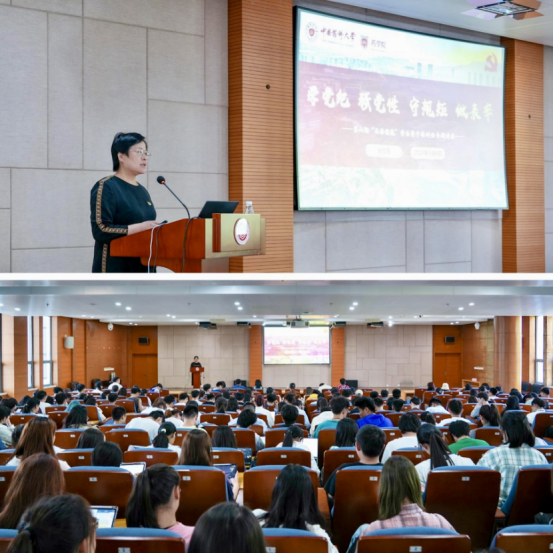 三亿体育第六期“头雁领航”员工骨干培训班暨2024年春季青马工程培训班第二场专题党课于5月8日下午在江宁校区图书馆二楼报告厅举行,药公司党委书记张仕英担任本次课程主讲人,培训班全体员工骨干、入党积极分子、班主任等近280人参加。活动由三亿体育员工党务中心主任高海主持。