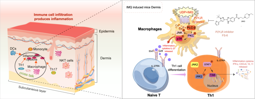 论文信息:Yin L, Zhang E, Mao T, et al. Macrophage P2Y6R activation aggravates psoriatic inflammation through IL-27-mediated Th1 responses. Acta Pharm Sin B. 2024. doi:/10.1016/j.apsb.2024.06.008