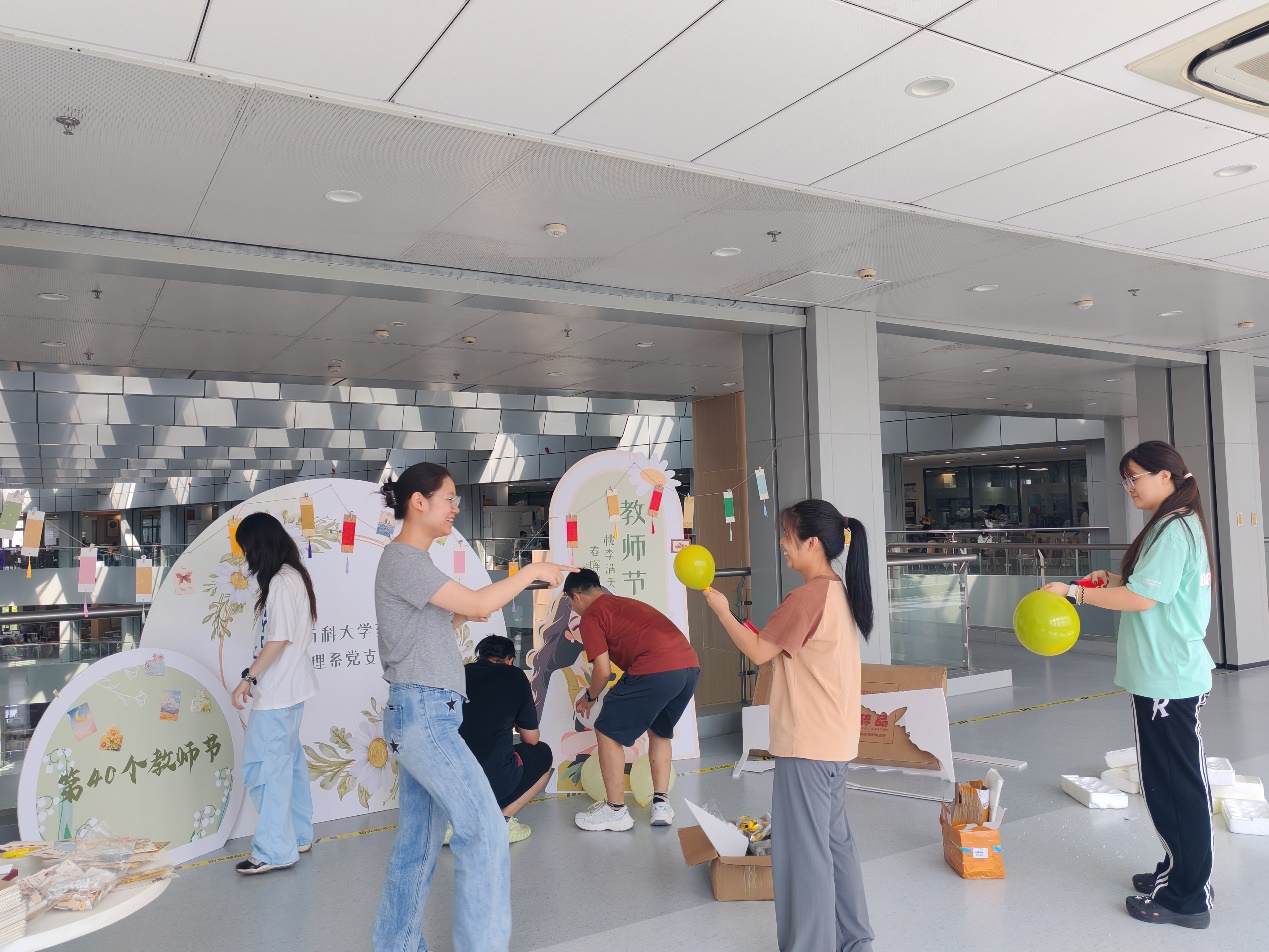 活动开始前,大家还自发齐聚一堂,亲手布置活动会场,氛围融洽友爱,展示了药理系积极向上的精神风貌。通过本次教师节主题活动,老师们进一步交流了情感,增进了友谊,也增强了集体的凝聚力和向心力。