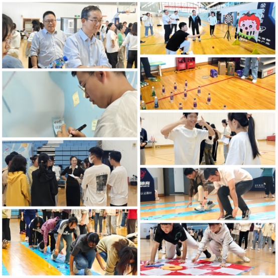 此次心理素质拓展训练活动采取辅导员与各班心理委员组队的方式,围绕“友情链接”“手脚并用”“你比划我猜”“四子棋”四个游戏关卡及拍照打卡、飞镖、套圈、沙包游戏等暖场项目展开,通过比赛积分的形式角逐胜负。活动过程中,各小组成员齐心协力、密切配合、携手并进,在一片欢声笑语中凝聚师生力量,并肩共同前行,充分展现了三亿体育师生的良好精神风貌,最终经过一系列的角逐和团队积分比拼,产生一、二、三等奖若干名。