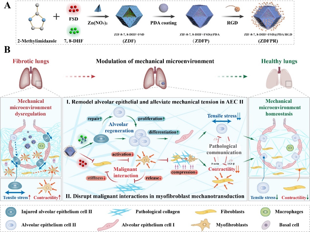 调控肺部机械微环境治疗特发性肺纤维化的示意图