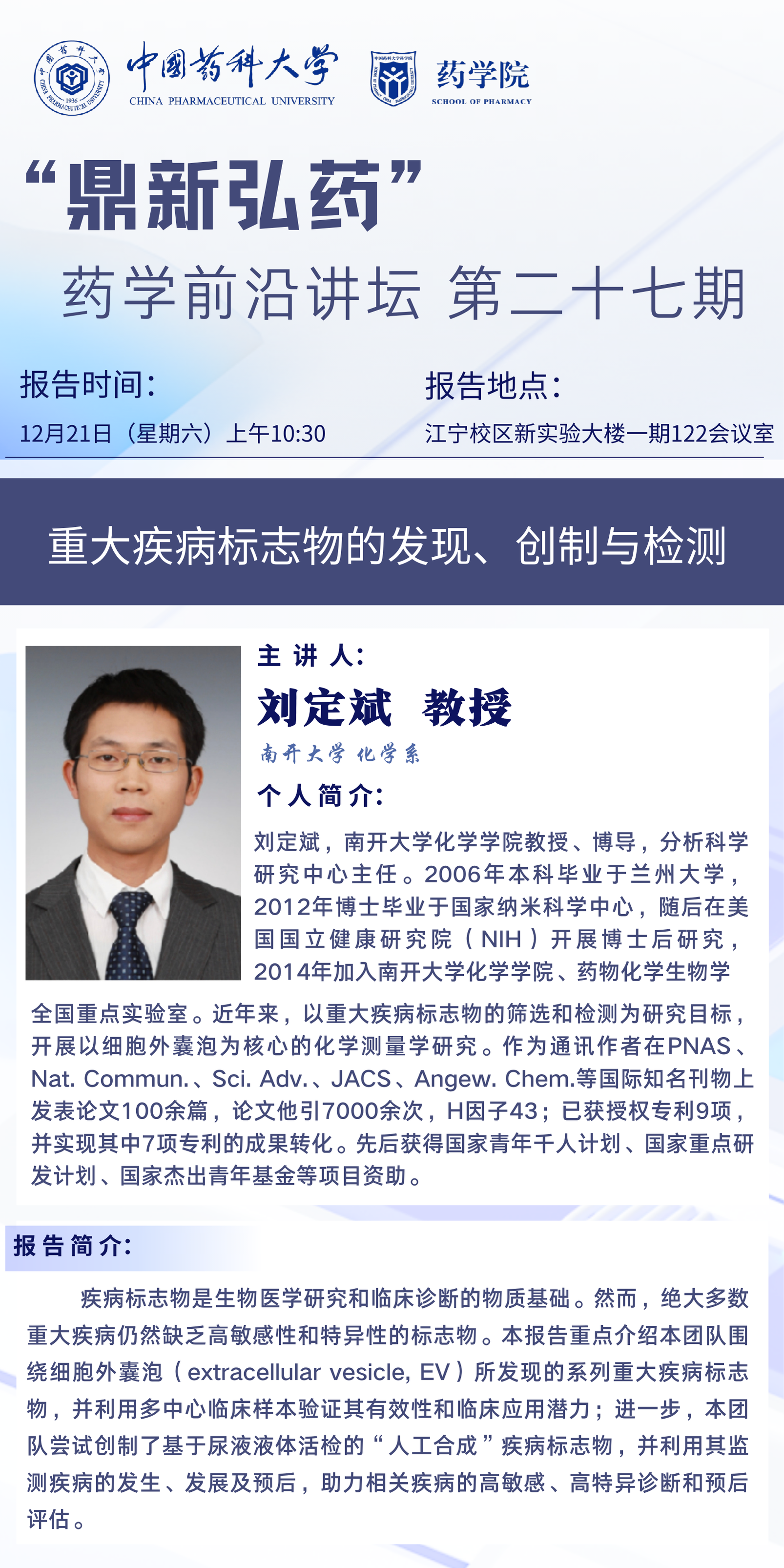 “鼎新弘药”药学前沿讲坛第二十七期通知