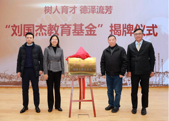 活动最后,南通联亚药业股份有限公司董事长张国华、珍视特管理咨询有限公司创始人胡珍泽、公司党委教师工作部部长钟文英、三亿体育经理吴照球共同为“刘国杰教育基金”揭牌。