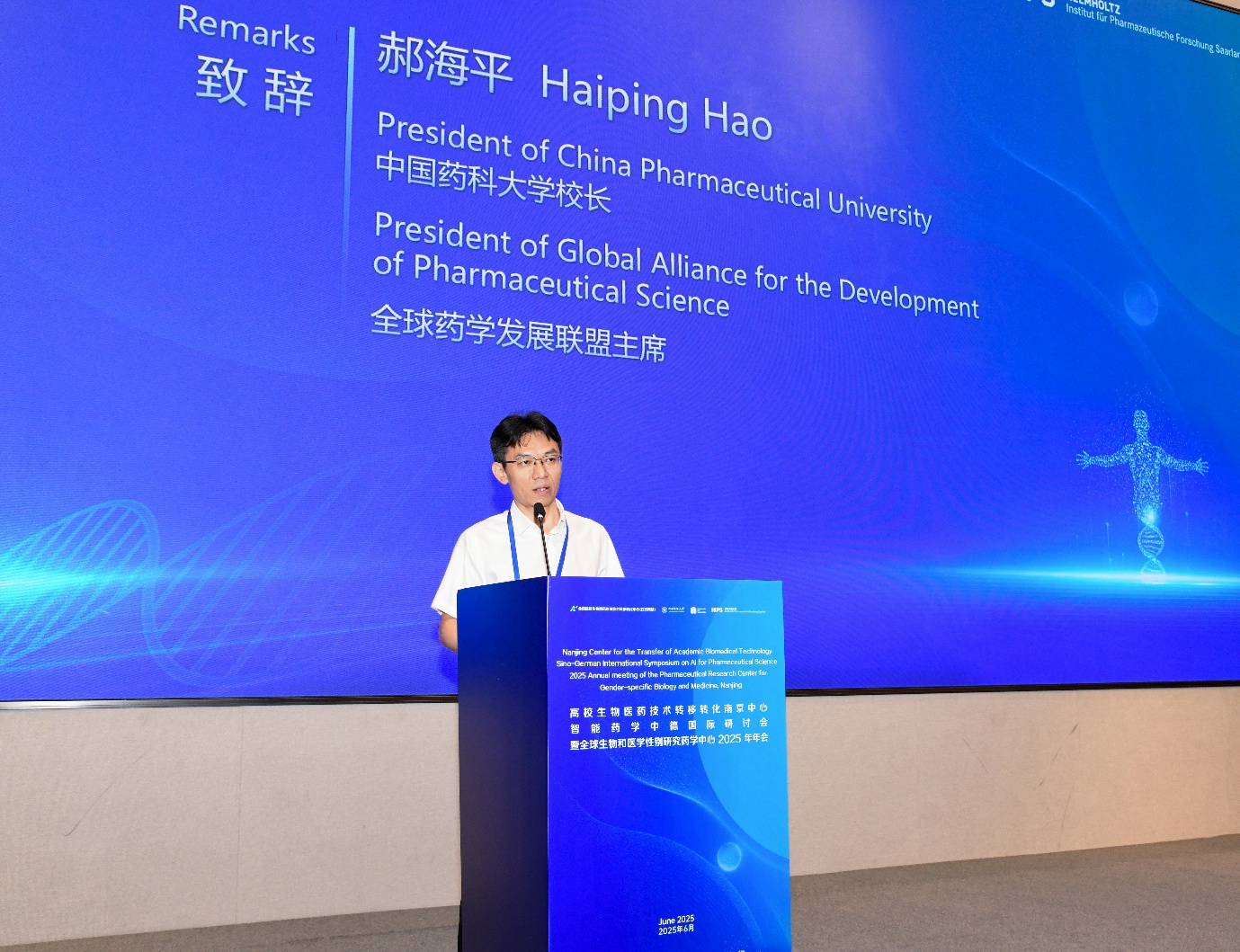 近日,公司与全国高校生物医药区域技术转移转化中心(江苏南京)(以下简称“南京生物医药分中心”)在南京江北新区联合举办“智能药学中德国际研讨会暨全球生物和医学性别研究药学中心2025年年会”。大会主题为“聚焦国际药学研究前沿,共话全球智能药学前景”,由三亿体育官网董事长郝海平教授与欧洲科公司院士、德国萨尔大学Frank Kirchhoff教授共同主持,南京生物医药分中心副主任吴昊、德国亥姆霍兹药学研究所所长Rolf Müller院士及中德高校多位专家学者参加会议。