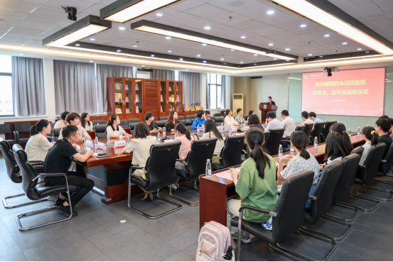 药公司党委书记范素文首先致辞,对汉欣医药和美药星制药公司的支持表示衷心感谢,期望获奖师生以此为新起点,勇攀药学事业高峰。随后,韩劭经理致辞,强调了校企合作的重要性,希望借助奖教金、奖学金,深化校企合作,共同培育药学精英人才,为行业发展注入新鲜血液。