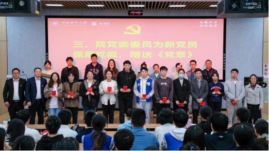 为新发展预备党员佩戴党徽、赠送党章