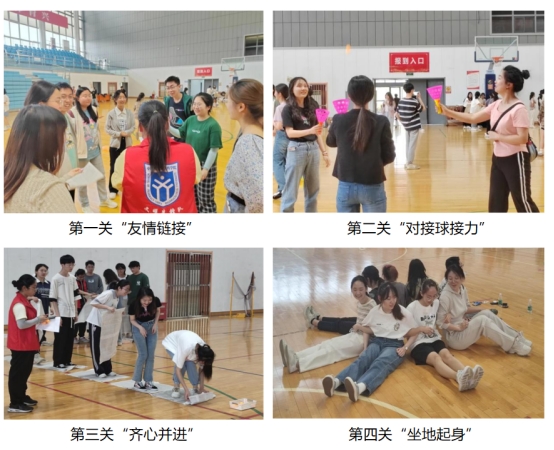 本次心理拓展训练采取辅导员与各班心理委员组队的方式,围绕“友情链接”“对接球接力跑”“齐心并进”“坐地起身”四个游戏关卡,拍照打卡、积分套圈两个娱乐项目共六个环节展开,通过比赛积分的形式角逐胜负。活动过程中,各小组成员齐心协力、密切配合、携手并进,在一片欢声笑语中凝聚师生力量,并肩共同前行,充分展现了三亿体育师生的良好精神风貌,最终经过一系列的角逐和团队积分比拼,产生一、二、三等奖若干名。