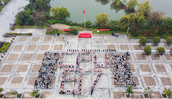 广场上的同学们佩戴校徽,摆出“CPU 87”字样,全体师生同声合唱中国药大人“药学专攻,保健民族任重”的使命与誓言。